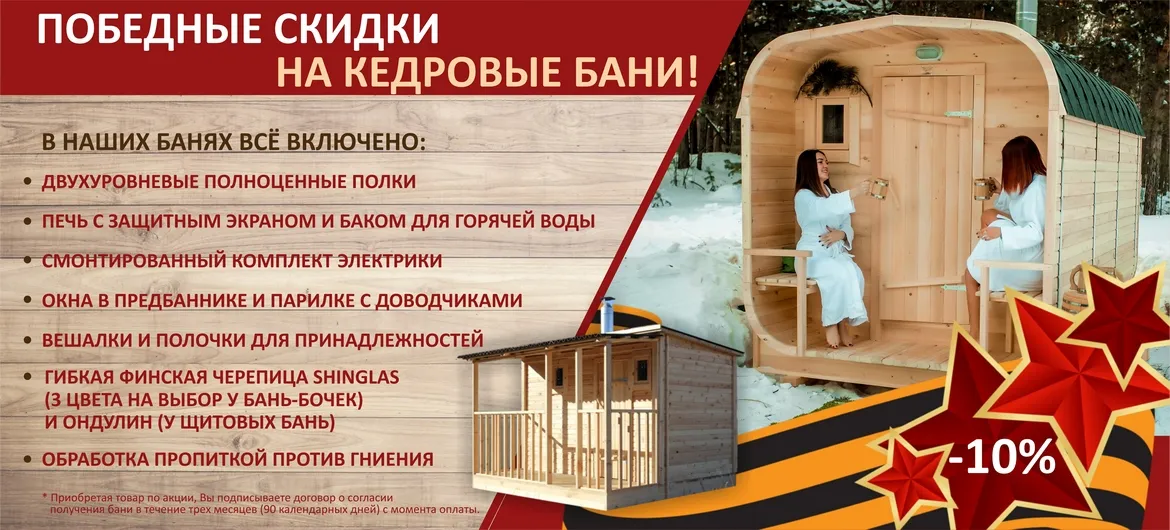 Победные скидки на КЕДРОВЫЕ БАНИ!