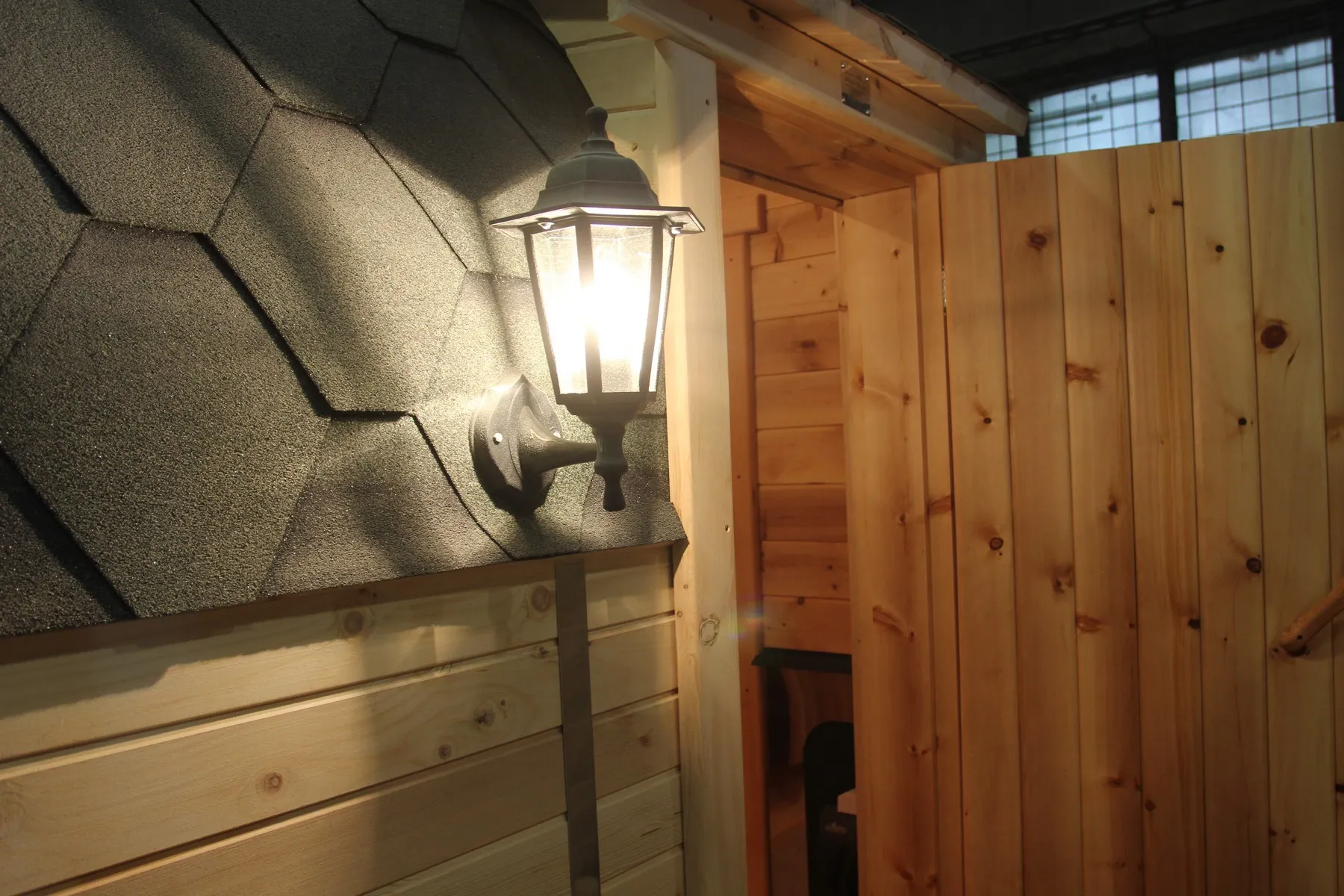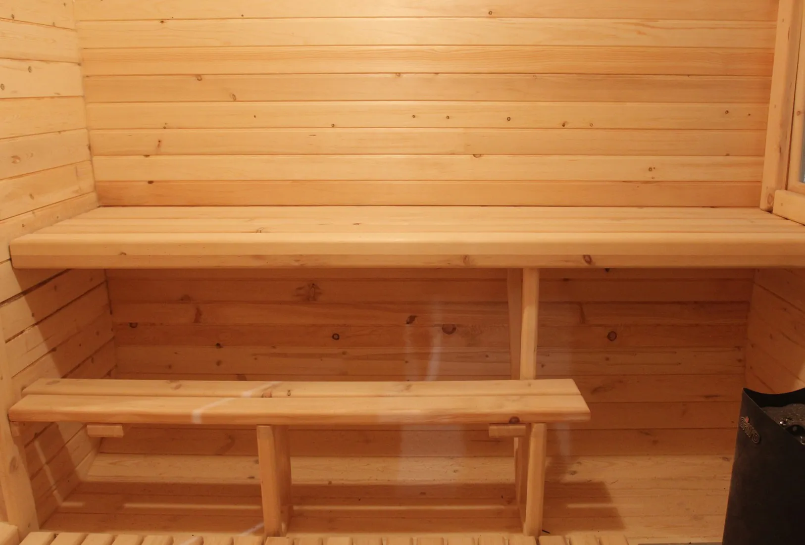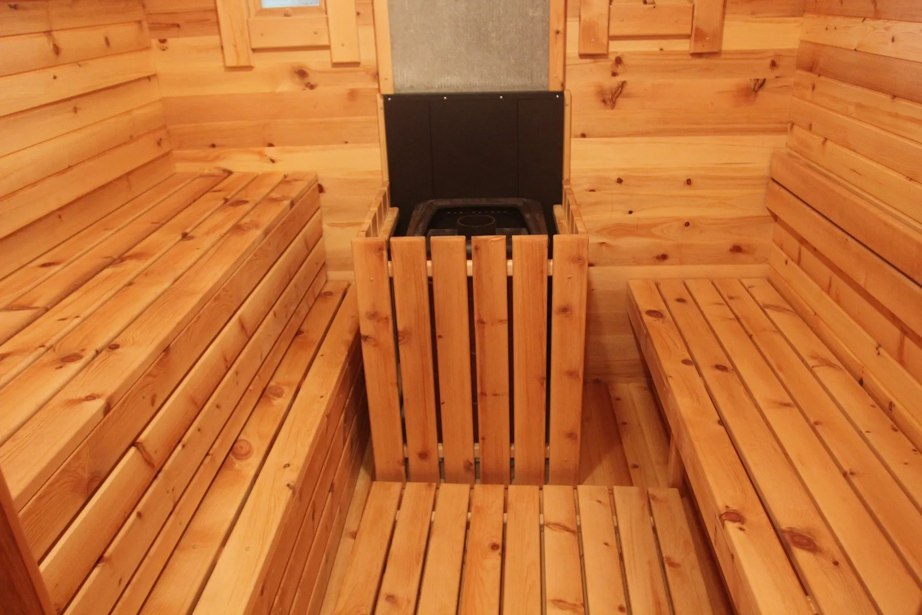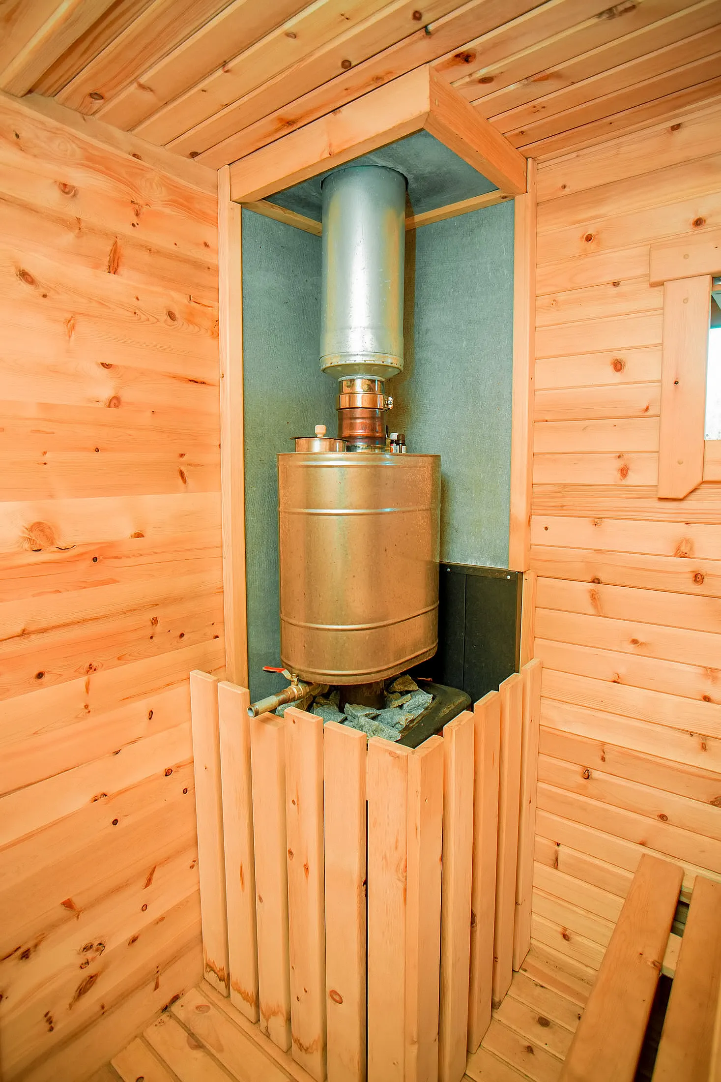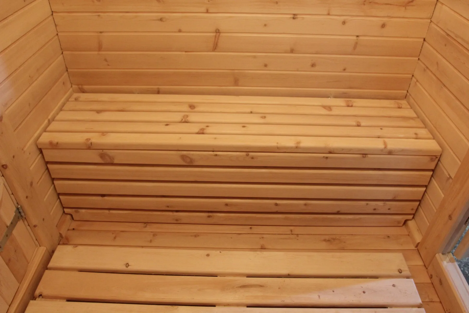 Это изделие круглой вытянутой формы с одним парильным отделением. Внутреннее пространство включает в себя печь у дальней стены и лавки из кедра по обе стороны бани. За счет компактной формы баня нагревается в течение 30 минут. По вашему желанию ее можно укомплектовать козырьком, верандой и печью с внешней загрузкой, благодаря которой весь мусор после топки остается на улице. Круглая баня-бочка не требует полноценный фундамент, поэтому при необходимости ее можно перенести в другое место.