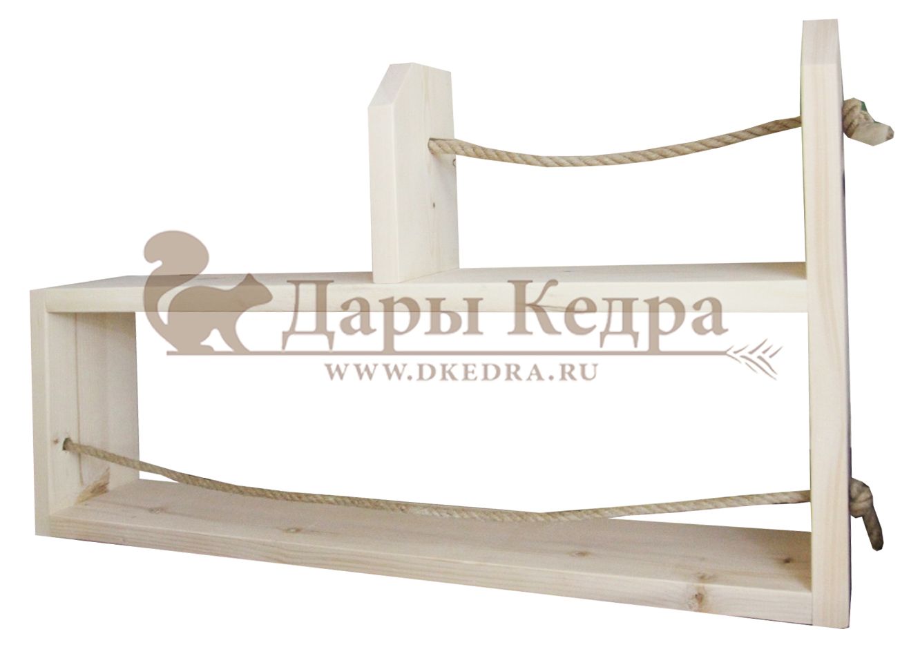 Полка из кедра с джутовой веревкой Полка из кедра станет оригинальным дополнением и украшением в бане или на даче и даже в ванной и на кухне. А тех, кто любит эко-стиль, наши полки удивят по-настоящему своей продуманностью и функциональностью! В бане: данный вариант полки подойдет для размещения коробок с фитосборами, бутылей с шампунем и других нужных банных предметов. На кухне:компактно разместятся здесь баночки для специй, сыпучих, круп. , ,