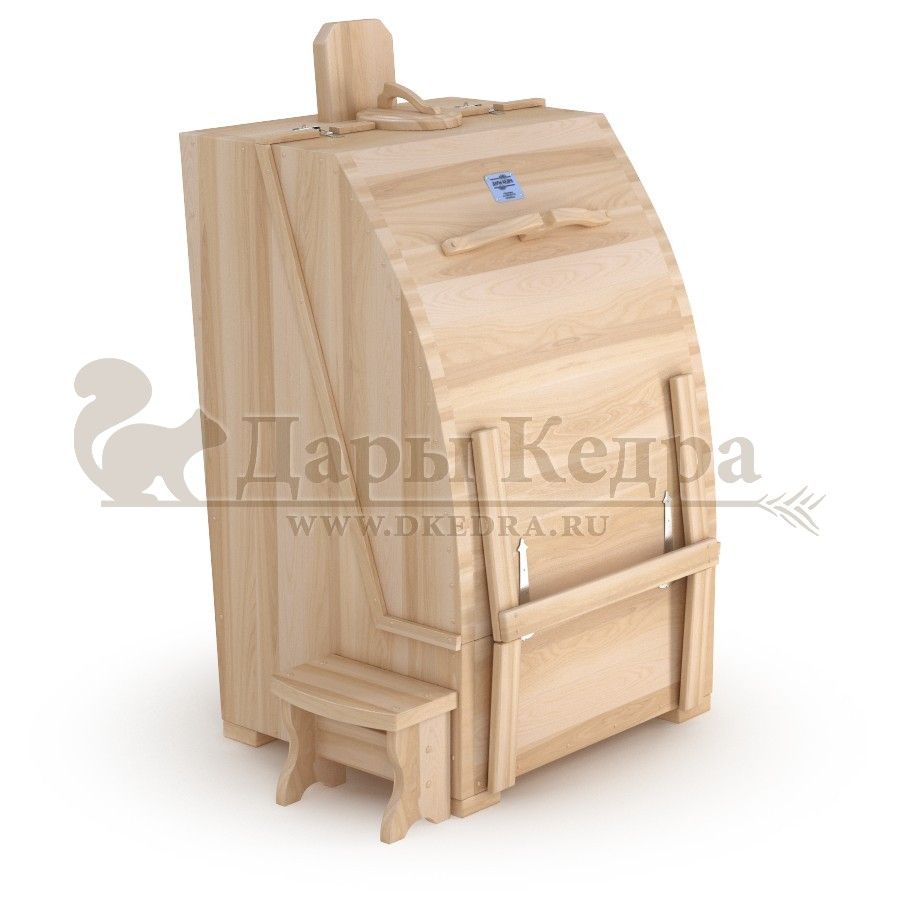 Кедровая бочка (фитобочка) двухместная «Классическая» Двухместная фитобочка из кедра - это парная, в которой удобно принимать процедуры двум людям. Она оборудована откидными створками, дверцей, отверстием для головы и перегородкой (по желанию). Толщина стенок составляет 25 мм. Во время парения человек находится внутри кедровой бочки, а голова снаружи. Благодаря этому исключается возможность перегрева. Подлокотники из кедра и внутренние ручки делают эксплуатацию фитобочки более удобной. Парение в фитобочке благотворно влияет на организм в целом: повышается иммунитет, выводятся шлаки и токсины, улучшается работа органов тела и состояние кожи. , ,