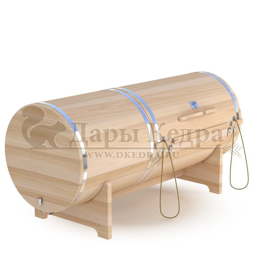 Кедровая бочка (фитобочка) горизонтальная «Профессиональная» Фитобочка горизонтальная из кедра наиболее комфортна в использовании, потому что во время процедур человек принимает лежачее положение. Она оснащена откидной дверцей, которая во время открывания хорошо держится за счет джутовых веревок. Внутренняя ручка из кедра облегчает открывание и закрывании двери во время использования. Такая модель подходит для оздоровительных центров. Парение в фитобочке благотворно влияет на организм в целом: повышается иммунитет, выводятся шлаки и токсины, улучшается работа органов тела и состояние кожи.