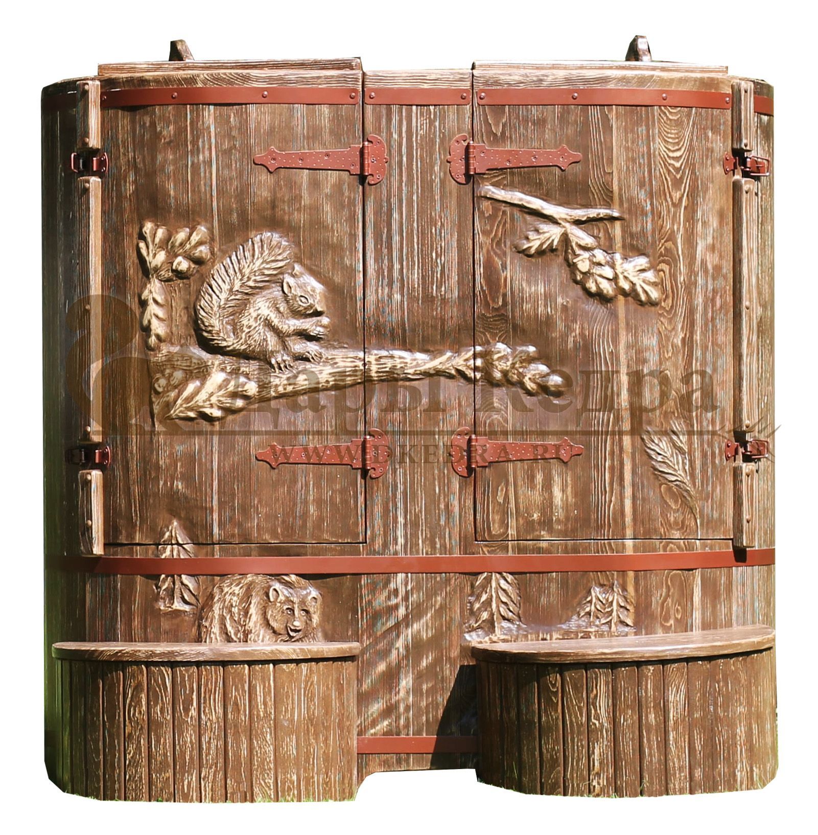 Кедровая бочка (фитобочка) «Звери в лесу» Любая модель эксклюзивной фитобочки - это выбор не только дизайнеров и ценителей красоты, но и тех, кто любит нестандартный подход в любых деталях. С оригинальной авторской фитобочкой Дары Кедра ваша квартира, дом или салон красоты станут объектом всеобщего внимания, ведь такая фитобочка - это не просто смело, красиво и достойно, это еще и очень полезно для Вашего здоровья! Художественная резьба это ручная работа, выполняется разными мастерами и каждый рисунок неповторим. Вы можете выбрать предложенные варианты резьбы или подобрать изображение и мы предложим вам подходящий эскиз. На сайте представлены наши работы в качестве примера. Каждая резьба рассчитывается индивидуально и может быть нанесена на любую модель фитобочки. Эксклюзивная фитобочка может быть представлена в разной цветовой гамме: После того, как цвет фитобочки выбран, необходимо определиться с вариантом резьбы (или предложить свой): Фитобочку можно также декорировать канатной веревкой в места обручей из нержавеющей стали (оплачивается дополнительно). , ,