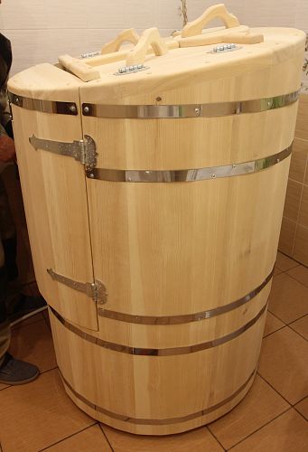 Заказали такую фитобочку к себе в Новосибирский салон красоты Blossom. Спасибо за доставку и качественное обслуживание. Первое включение бочки мне запомнилось насыщенным кедровым ароматом, который наполнял комнату по мере прогревания древесины. Когда садишься внутрь, по телу проходит приятное, расслабляющее тепло. Ощущения точно такие же, как в бане, но за счет того, что голова не нагревается, весь процесс переносится легче, нет абсолютно никакого дискомфорта. После процедуры чувствуешь себя необыкновенно легко.
